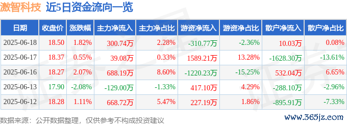 本站消息9688策略宝,截至2025年6月18日收盘,激智科技(300566)报收于18.5元,上涨1.82%,换手率3.15%,成交量7.19万手,成交额1.32亿元。