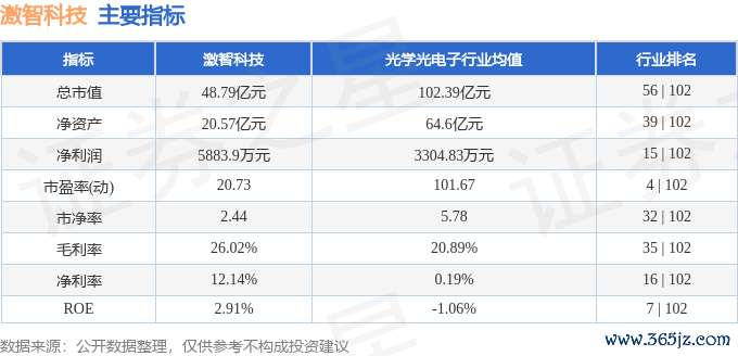 该股主要指标及行业内排名如下: